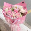 Bó hoa mang tông hồng pastel dịu nhẹ pha sắc trắng tinh khôi, thể hiện sự thanh lịch và hiện đại. Giấy gói hồng phối ruy băng Dior sang trọng tạo điểm nhấn cao cấp, phù hợp với nhiều dịp tặng hoa khác nhau.
