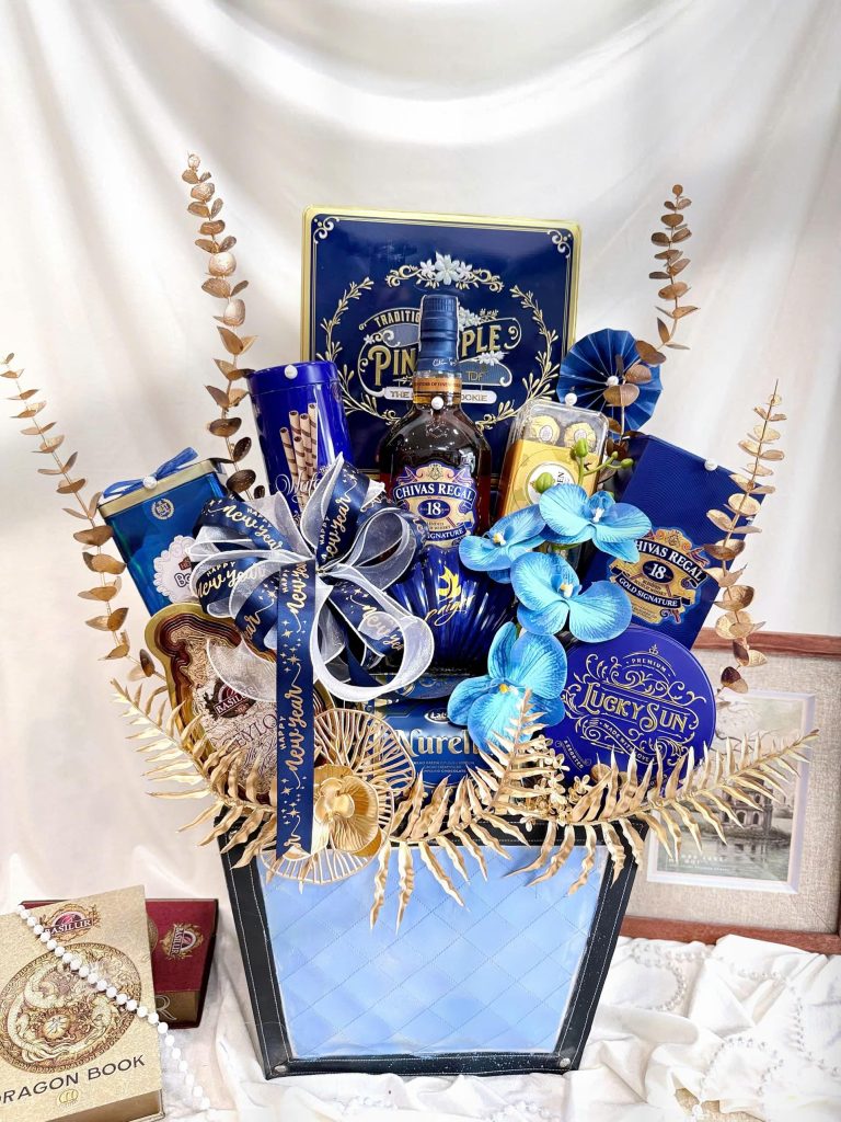 Giỏ quà Tết cao cấp TDF13 – Tông xanh hoàng gia nổi bật & tinh tế
