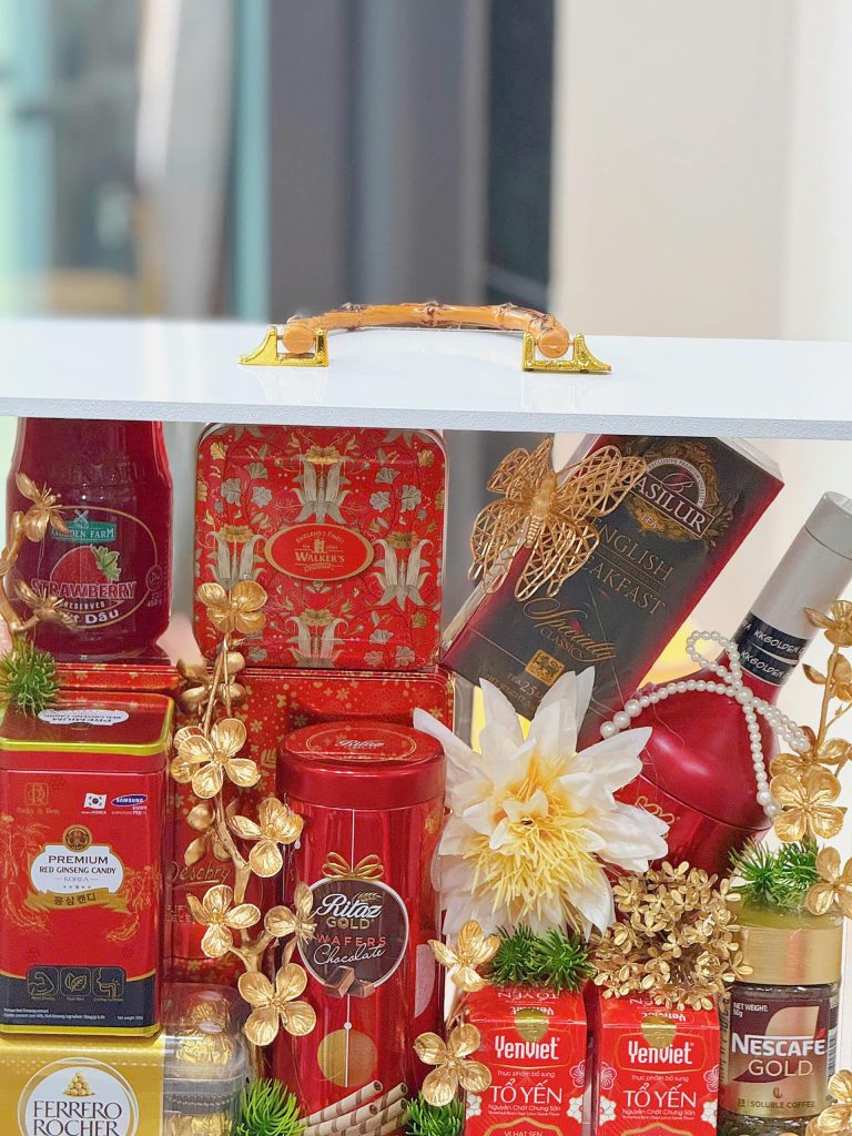 Set được tuyển chọn các sản phẩm bánh kẹo nhập khẩu, trà – cà phê thương hiệu quen thuộc và tổ yến chưng sẵn, mang ý nghĩa chăm sóc sức khỏe, tài lộc và sung túc trong năm mới.