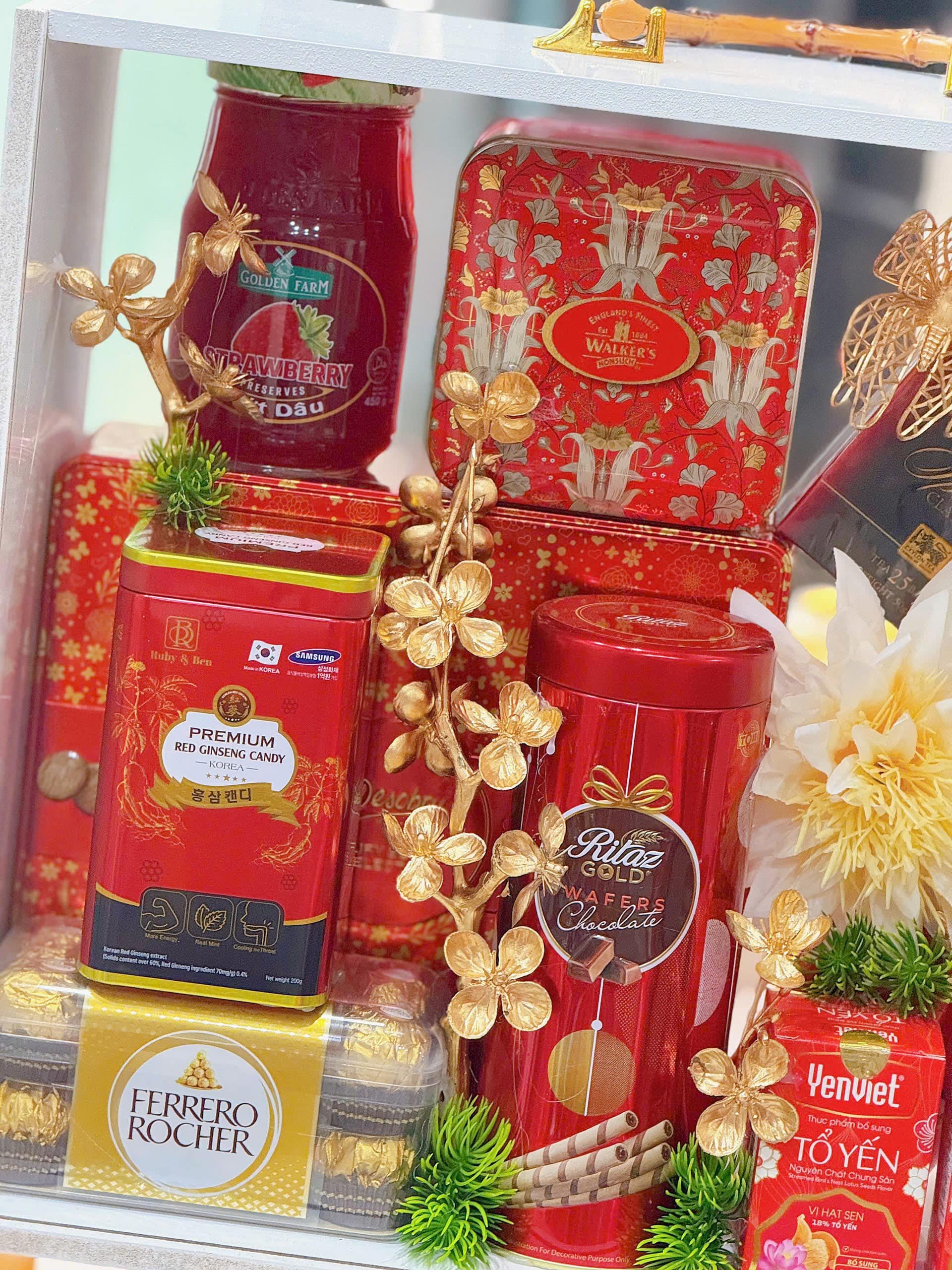 Set được tuyển chọn các sản phẩm bánh kẹo nhập khẩu, trà – cà phê thương hiệu quen thuộc và tổ yến chưng sẵn, mang ý nghĩa chăm sóc sức khỏe, tài lộc và sung túc trong năm mới.