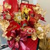 Đóng gói cao cấp, sử dụng hoa và phụ kiện trang trí vàng nổi bật