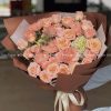 Bó hoa này mang sắc hồng mơ mảng kết hợp với cam nhẹ từ hoa cúc mâm xôi, tạo nên một tổng thể tinh tế và đầy lãng mạn. Màu sắc dịu dàng và tươi sáng của bó hoa rất phù hợp để trao tặng trong các dịp quan trọng như sinh nhật, lễ kỷ niệm hoặc những dịp yêu thương đặc biệt.