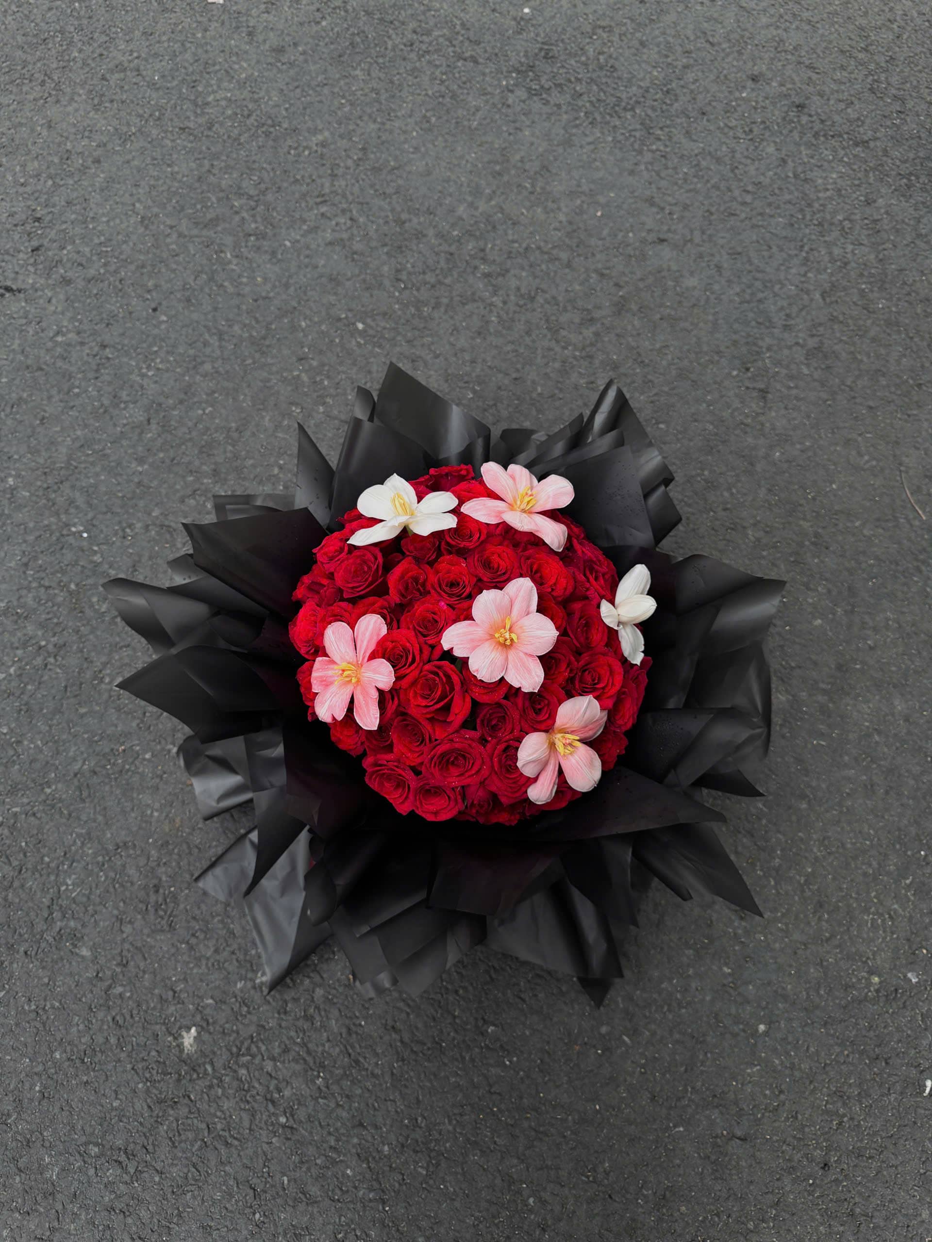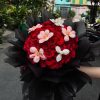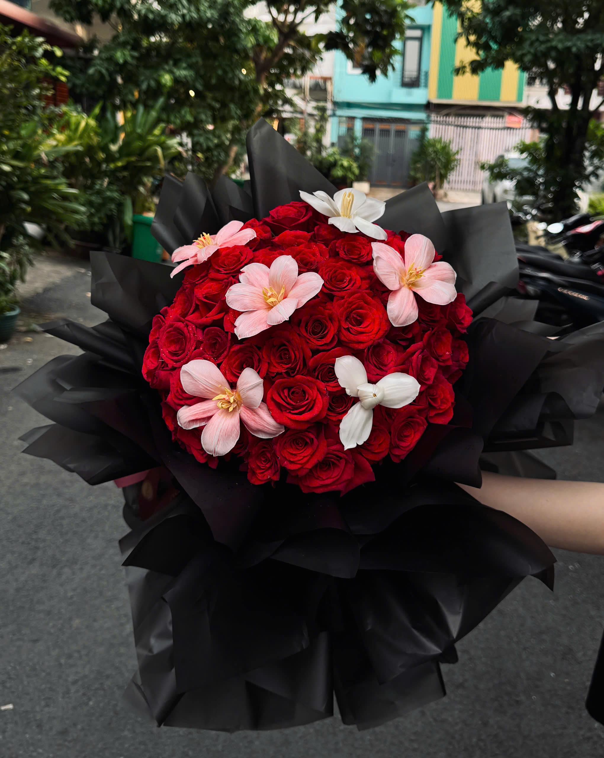 Hoa Lan Trắng: Hoa lan trắng với vẻ đẹp tinh khôi và thanh thoát, tạo điểm nhấn sang trọng và cao quý cho bó hoa. Sự kết hợp hoàn hảo giữa hoa hồng đỏ và hoa lan trắng mang lại vẻ đẹp hài hòa, mang đậm ý nghĩa của sự thanh khiết và trân trọng.