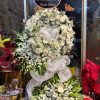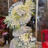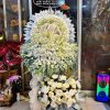 Hoa Cúc Trắng: Hoa cúc trắng với vẻ đẹp giản dị và thanh khiết thể hiện sự tôn trọng và lòng thành kính đối với người đã khuất. Những bông hoa này làm tăng thêm sự trang trọng cho lẵng hoa.