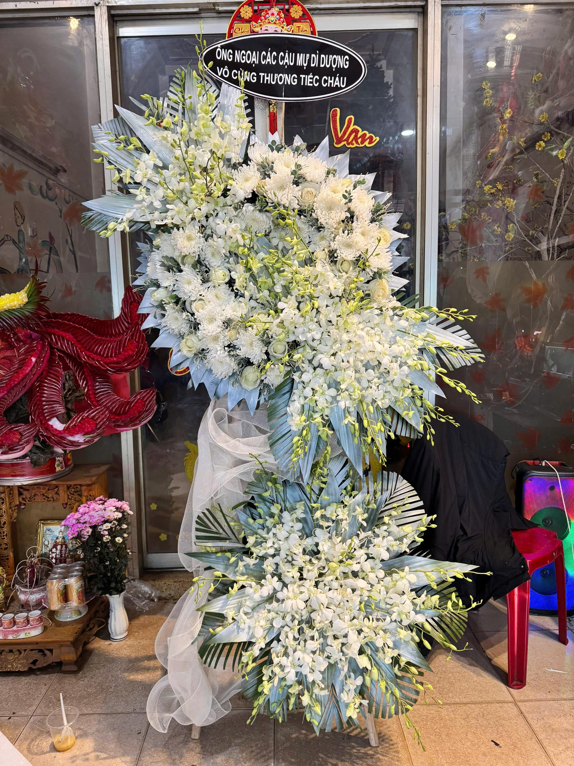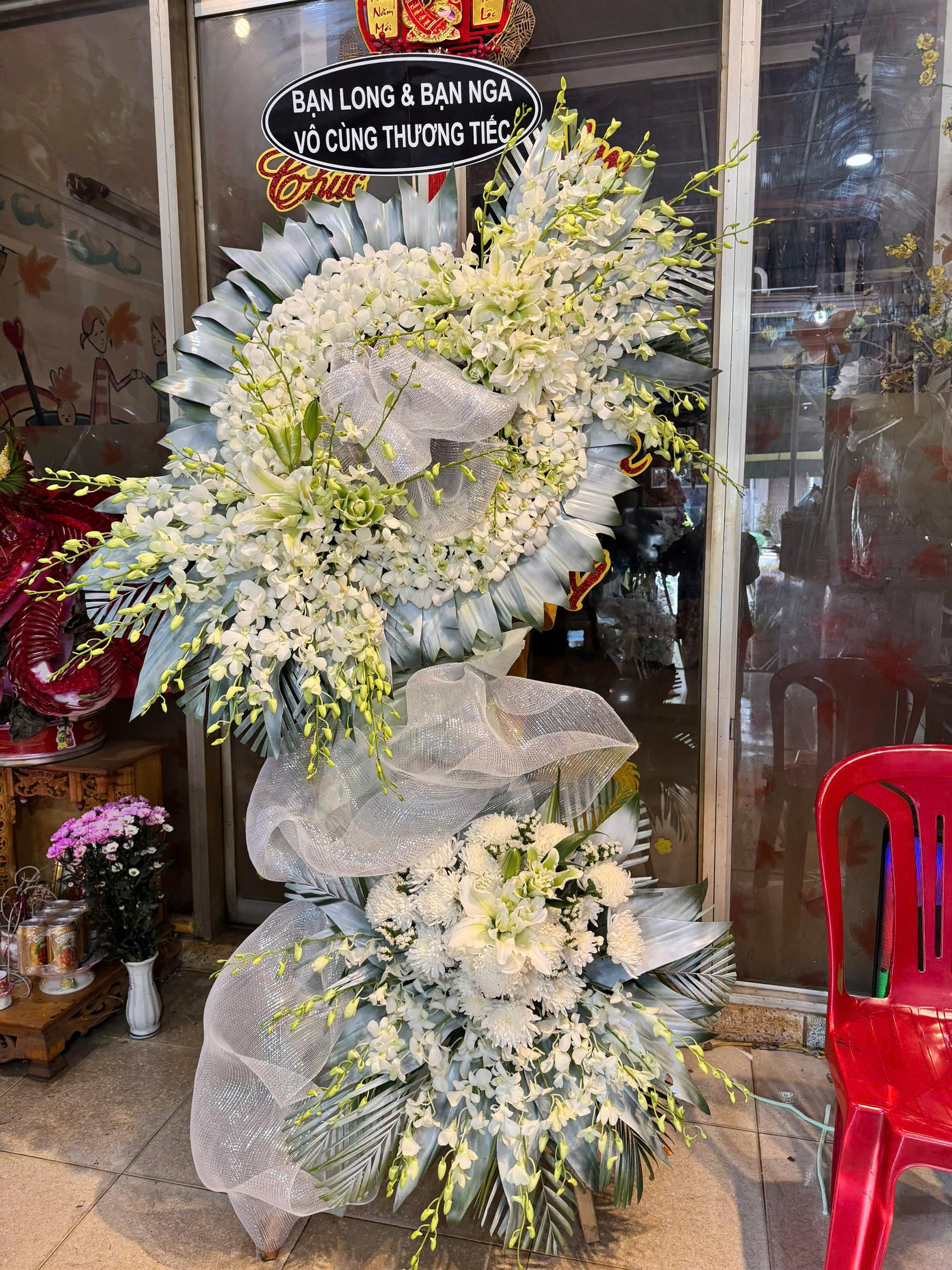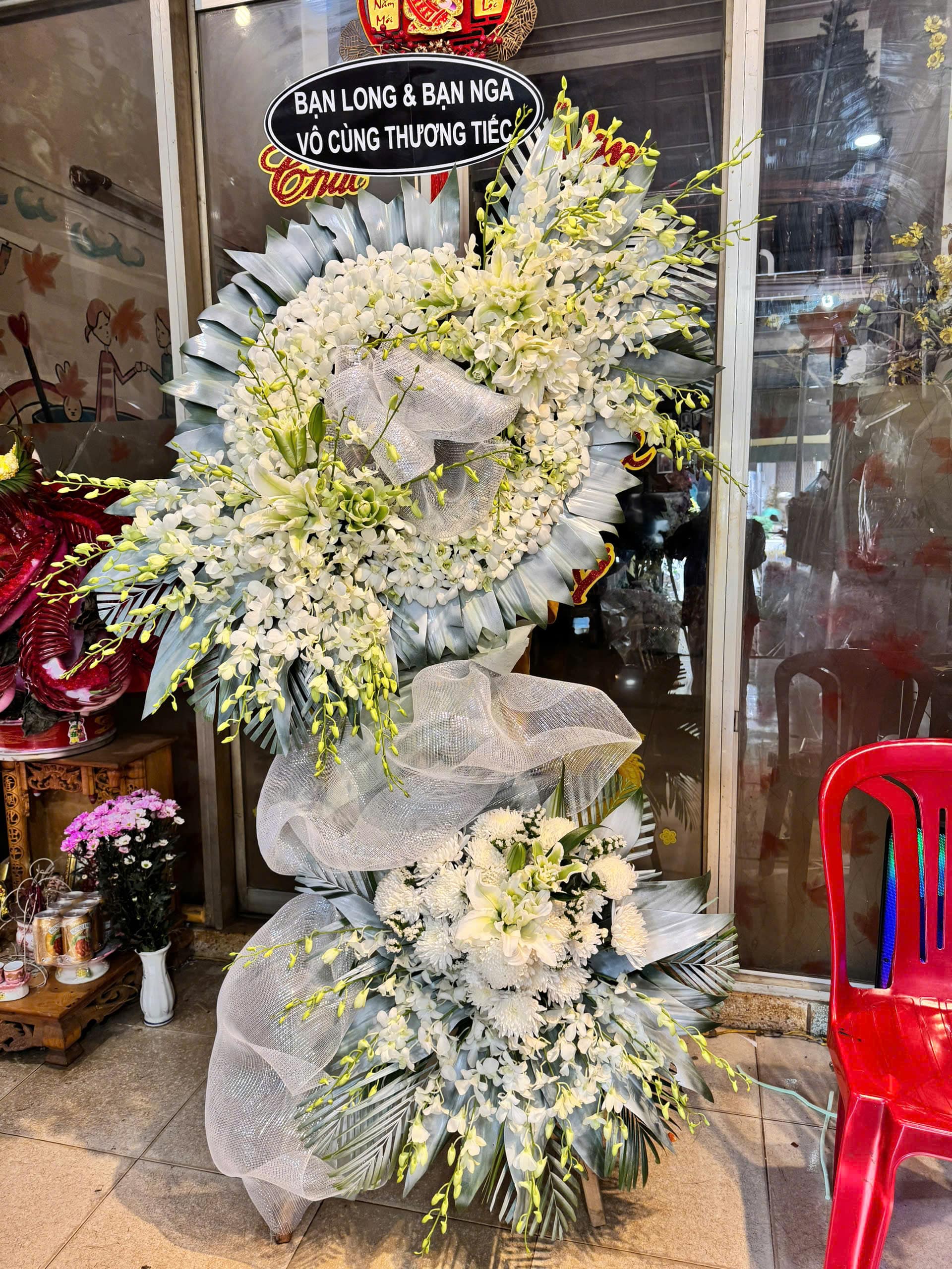 Hoa Lan Trắng: Hoa lan trắng là biểu tượng của sự thanh thoát, trong sáng và tôn trọng, rất phù hợp cho những dịp tang lễ. Những bông hoa lan này không chỉ làm nổi bật lẵng hoa mà còn mang lại sự yên bình và an ủi trong thời gian đau buồn.