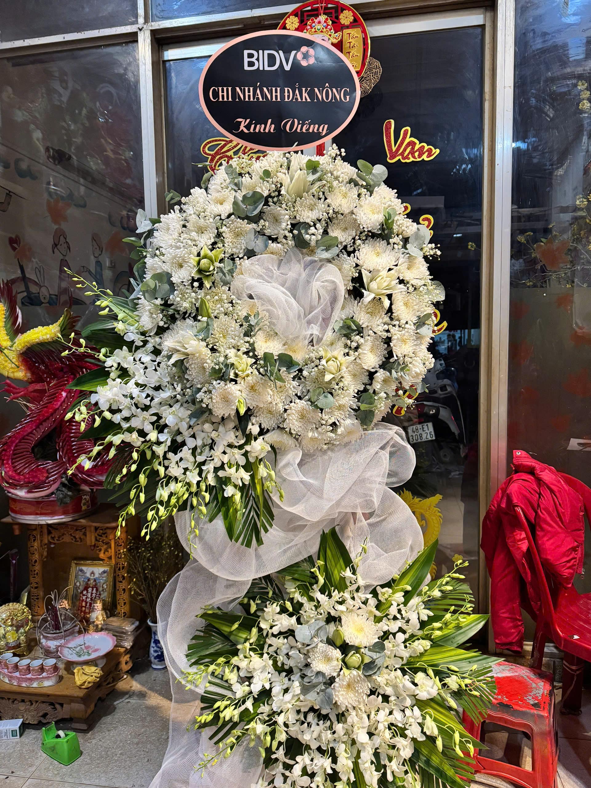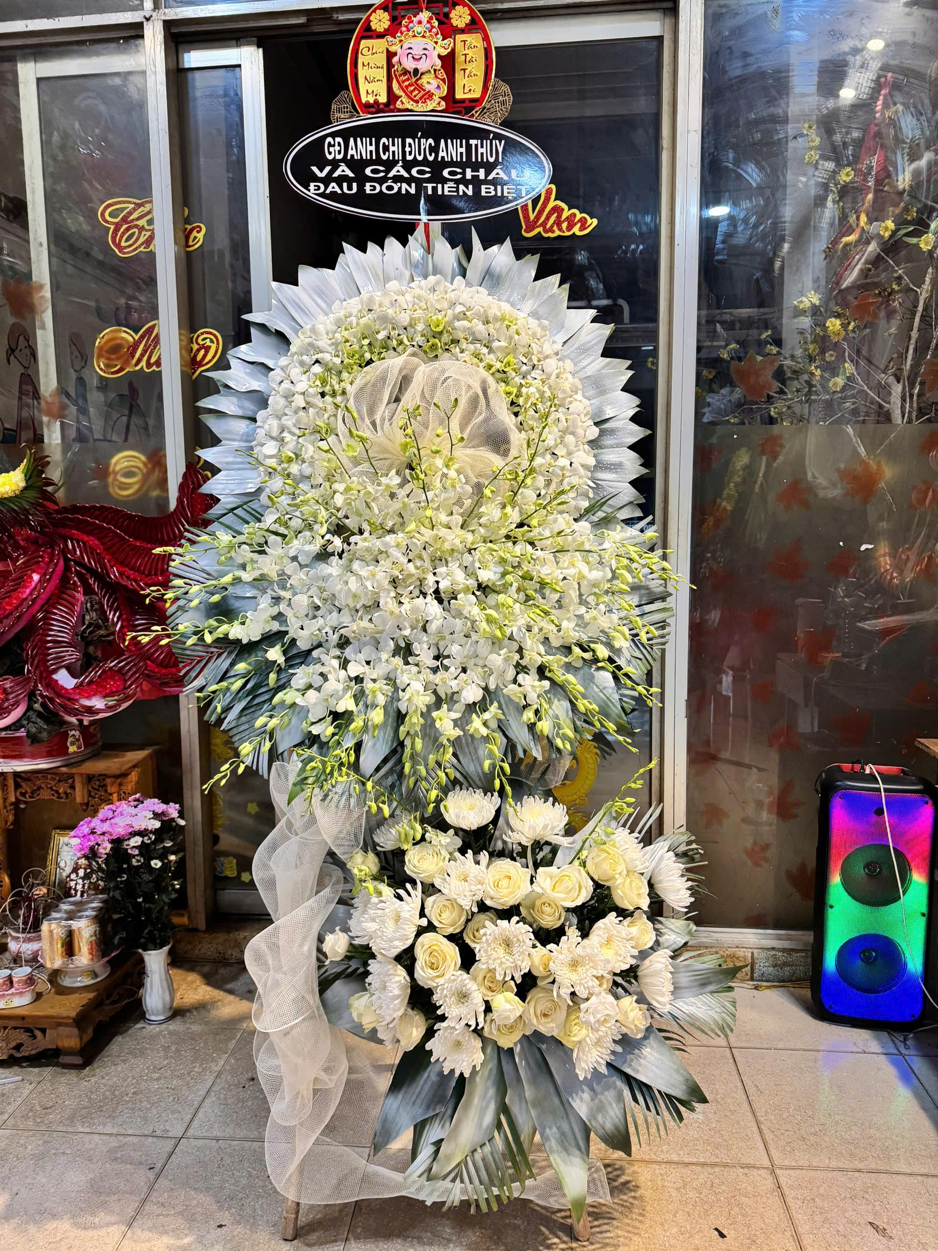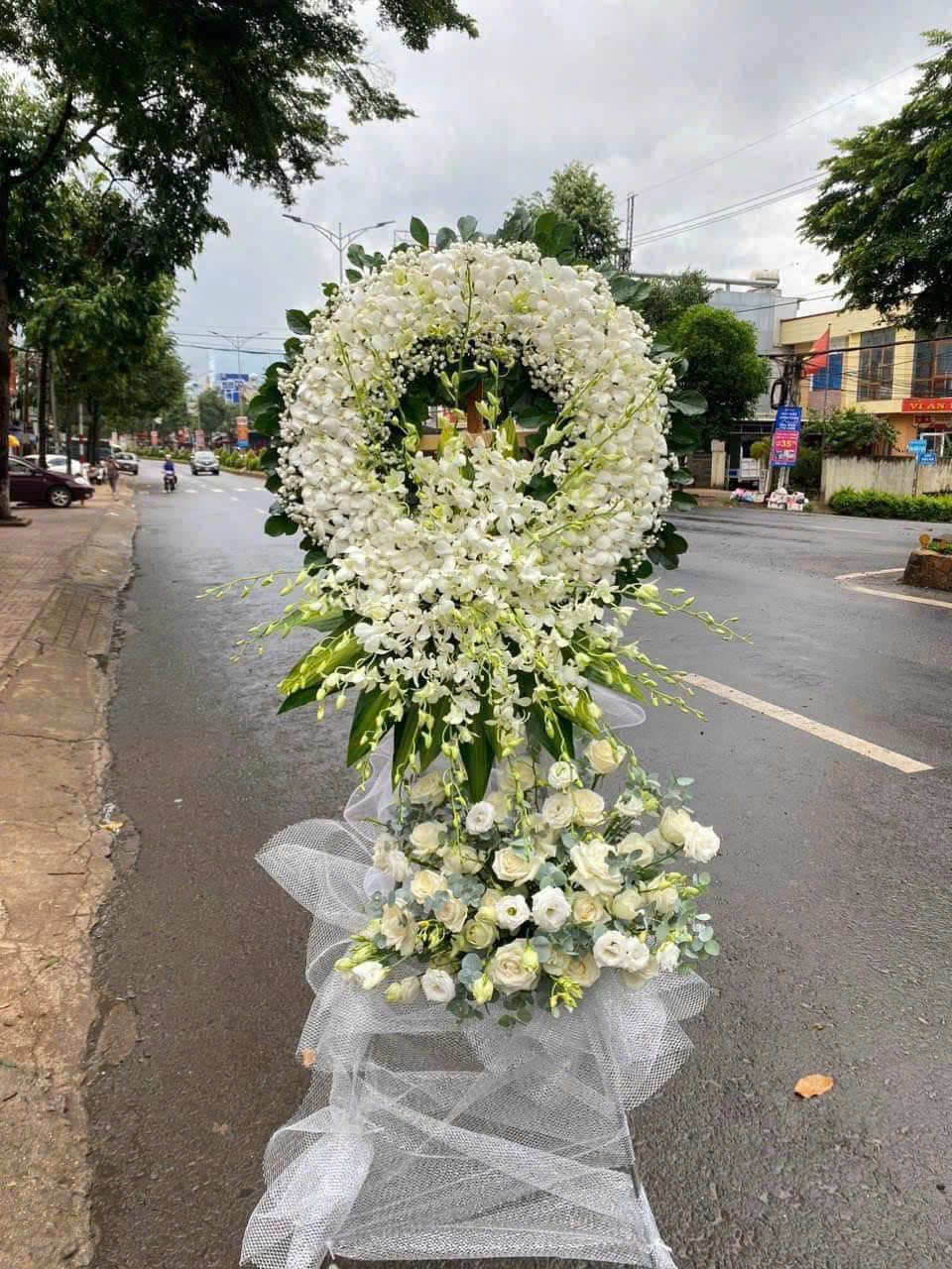 Hoa Lan Trắng: Hoa lan trắng là biểu tượng của sự thanh thoát, trong sáng và tôn trọng, rất phù hợp cho những dịp tang lễ. Những bông hoa lan này không chỉ làm nổi bật lẵng hoa mà còn mang lại sự yên bình và an ủi trong thời gian đau buồn.