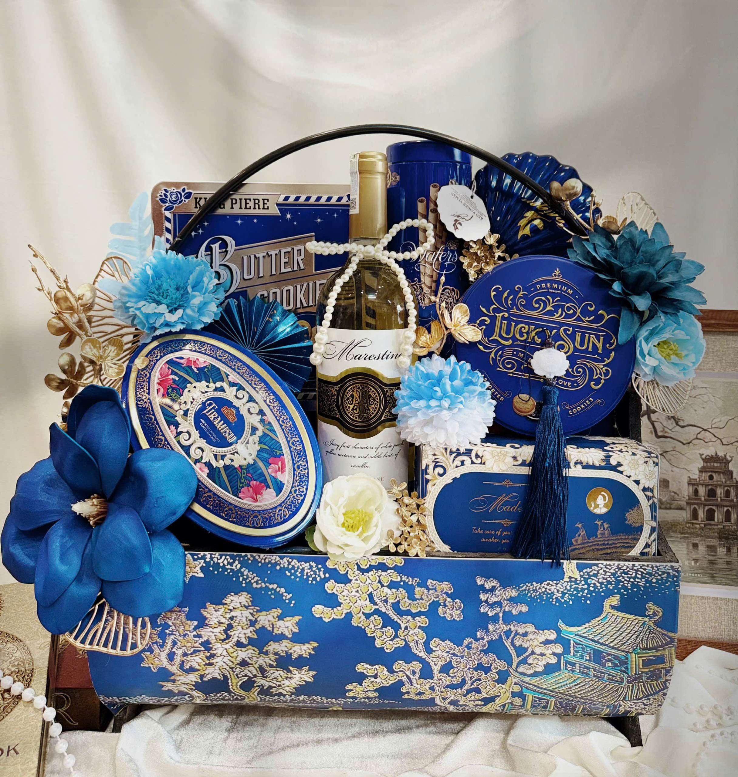 TDF24 là phiên bản quà Tết cao cấp tone xanh dương – gam màu tượng trưng cho sự thịnh vượng, bình an và may mắn. Đây là lựa chọn lý tưởng cho doanh nghiệp muốn tạo ấn tượng mạnh với khách hàng, đối tác. Thiết kế giỏ quà sang trọng, thanh lịch kết hợp phụ kiện tone xanh – vàng cực nổi bật, tạo cảm giác đẳng cấp ngay từ ánh nhìn đầu tiên.
