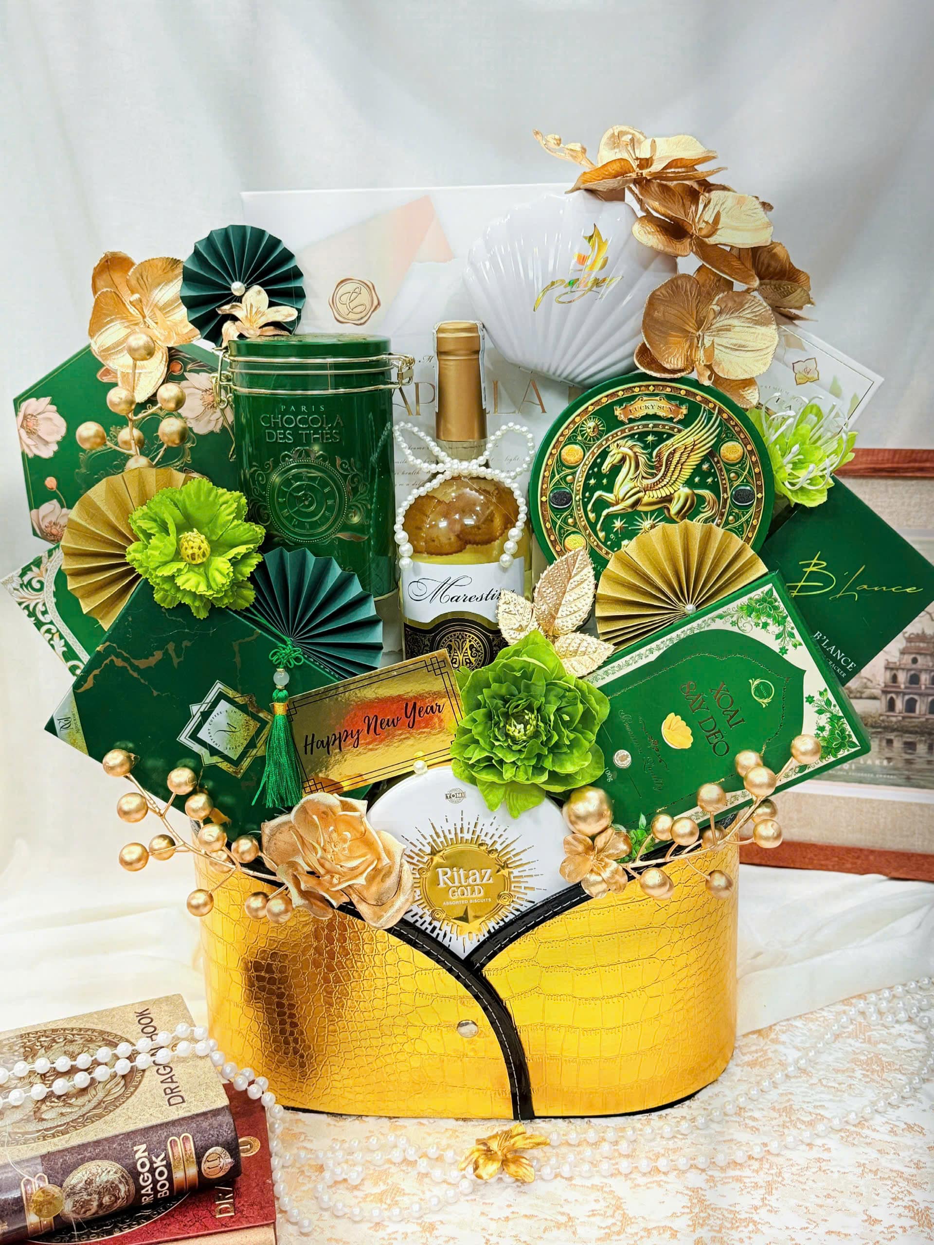 Set quà Tết TDF26 là lựa chọn hoàn hảo cho doanh nghiệp và khách hàng muốn tìm một hộp quà mang ý nghĩa may mắn – thịnh vượng – thanh quý. Tone màu xanh jade kết hợp vàng ánh kim giúp set quà trở nên vừa sang trọng vừa nổi bật, đặc biệt phù hợp để biếu tặng dịp Tết 2026.