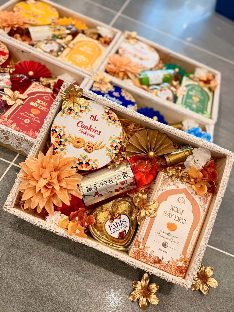 Khay quà TDF32 là lựa chọn cực kỳ phù hợp cho những dịp tặng nhẹ nhàng như 20/11 – tri ân giáo viên – tặng bạn bè – khách hàng – nhân viên. Thiết kế nhỏ gọn nhưng vẫn đủ sang trọng nhờ tông màu pastel – vàng ánh kim, điểm hoa lụa tinh tế, mang lại cảm giác ấm cúng – lịch sự – tinh tế.